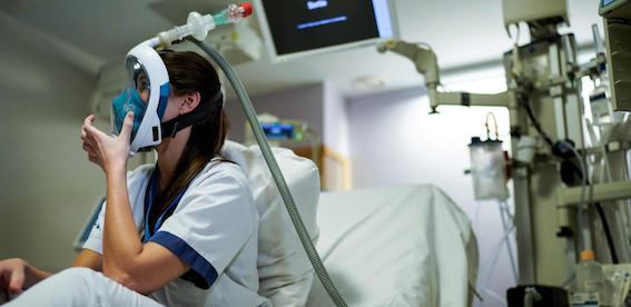 大利医疗人员用浮潜面罩改装成临时呼吸机使用。