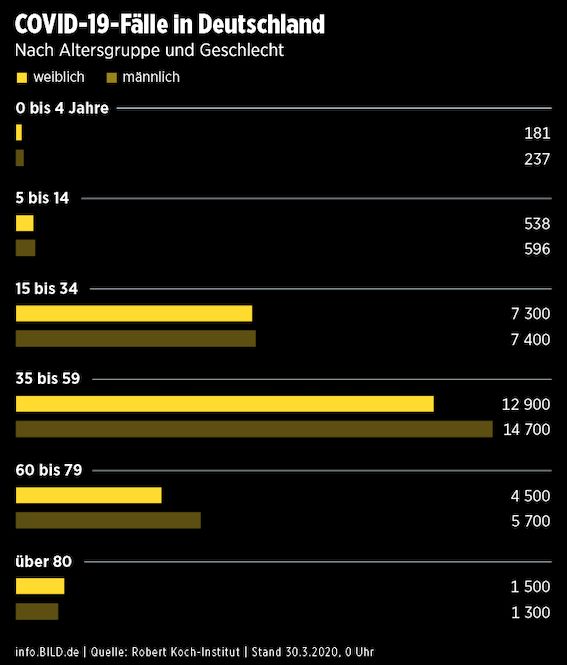 德国感染病患年龄统计分布