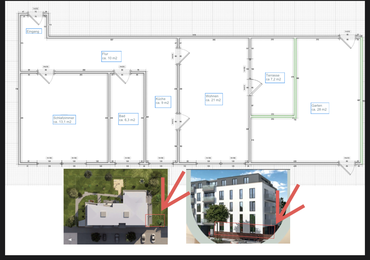 Dresden 2024年新房Löbtau Stadthaus出租。地址:Reisewitzer Straße 17,01159 Dresden, 2 Zimmer Wohnung,Erdgeschoss,地暖,居住面积约64平米,带独立28平米花园,带地下车库,自行车室,储蓄间,可整租也可合租。全新一体式厨房,拎包入住。交通便利,周围设施齐全,2分钟步行到Löbtau 车站, 有S-Bahn 6, 7, 12, Bus 61, 63, 90 路,直达大学,火车站,机场;到Löbtau-Passage 步行5分钟,Banken/Sparkassen 步行2分钟。要求:爱干净,不抽烟。押金3个月冷租。起租时间,2024年2月中下旬,具体时间可商量,可an,2024年2月13日下午可看房,房租私聊。有意者联系微信L1212B或Lbo121212。